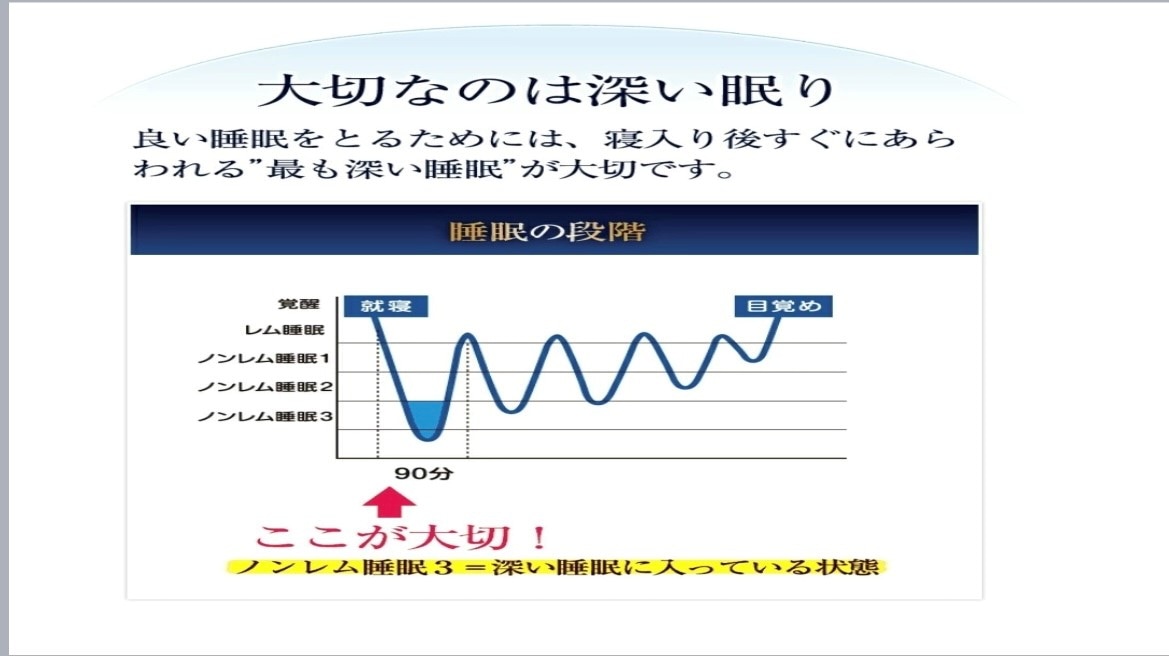 最初の90分でノンレム睡眠3という深い眠りにつくことができなければ、そのあとノンレム睡眠3まで深い眠りになることはありません。
