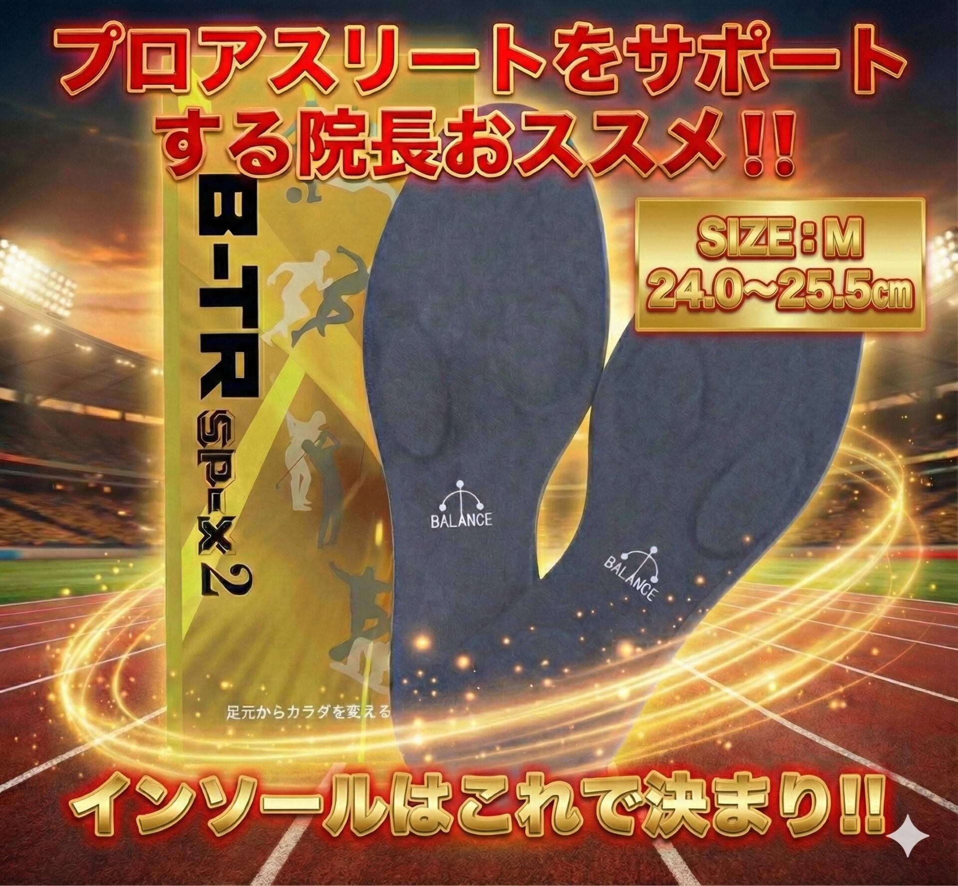 【プロ推奨・送料無料】インソール Mサイズ(24.0〜25.5㎝)